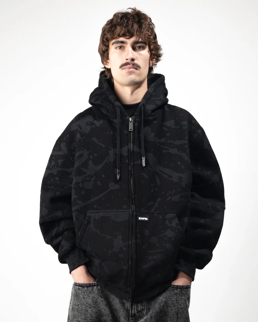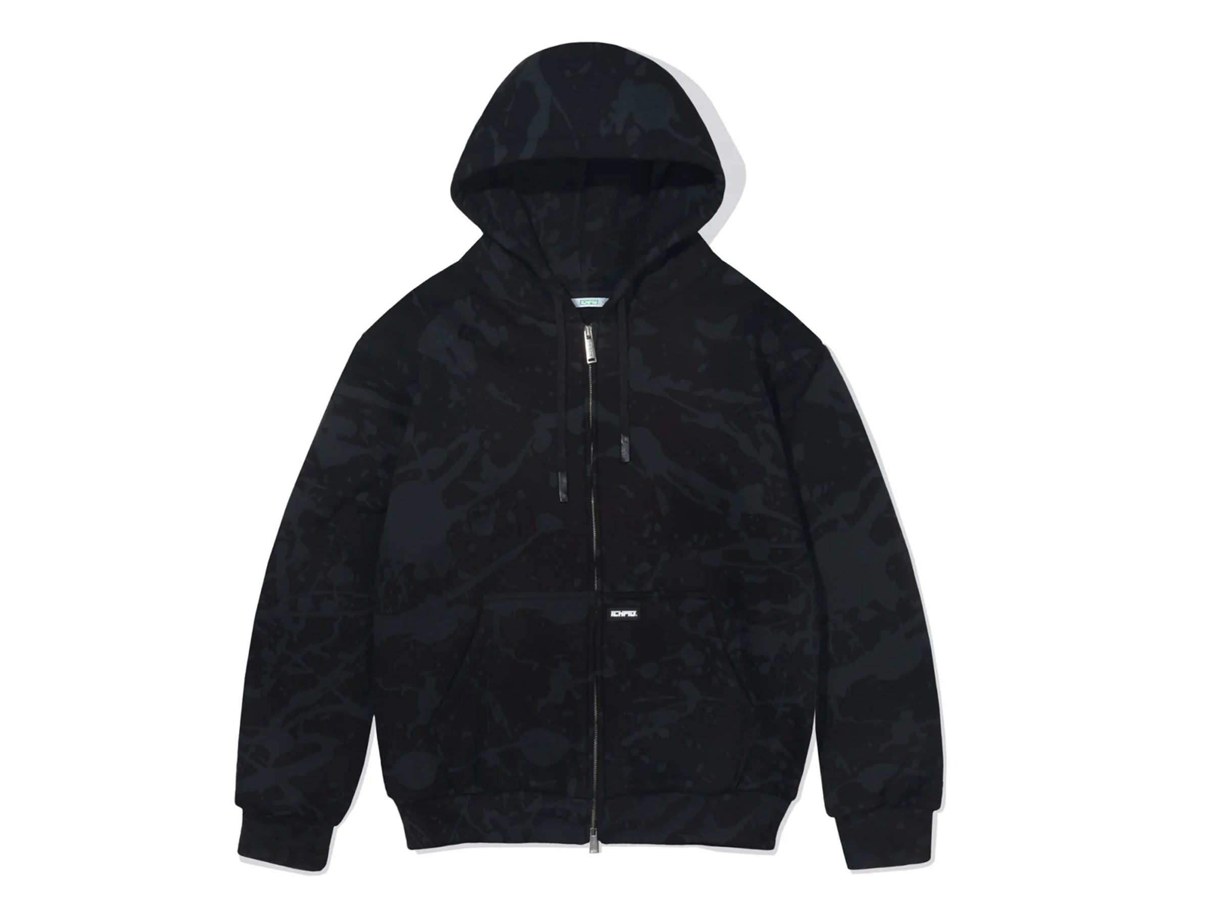 Splatter Zip-Up Hood - Black