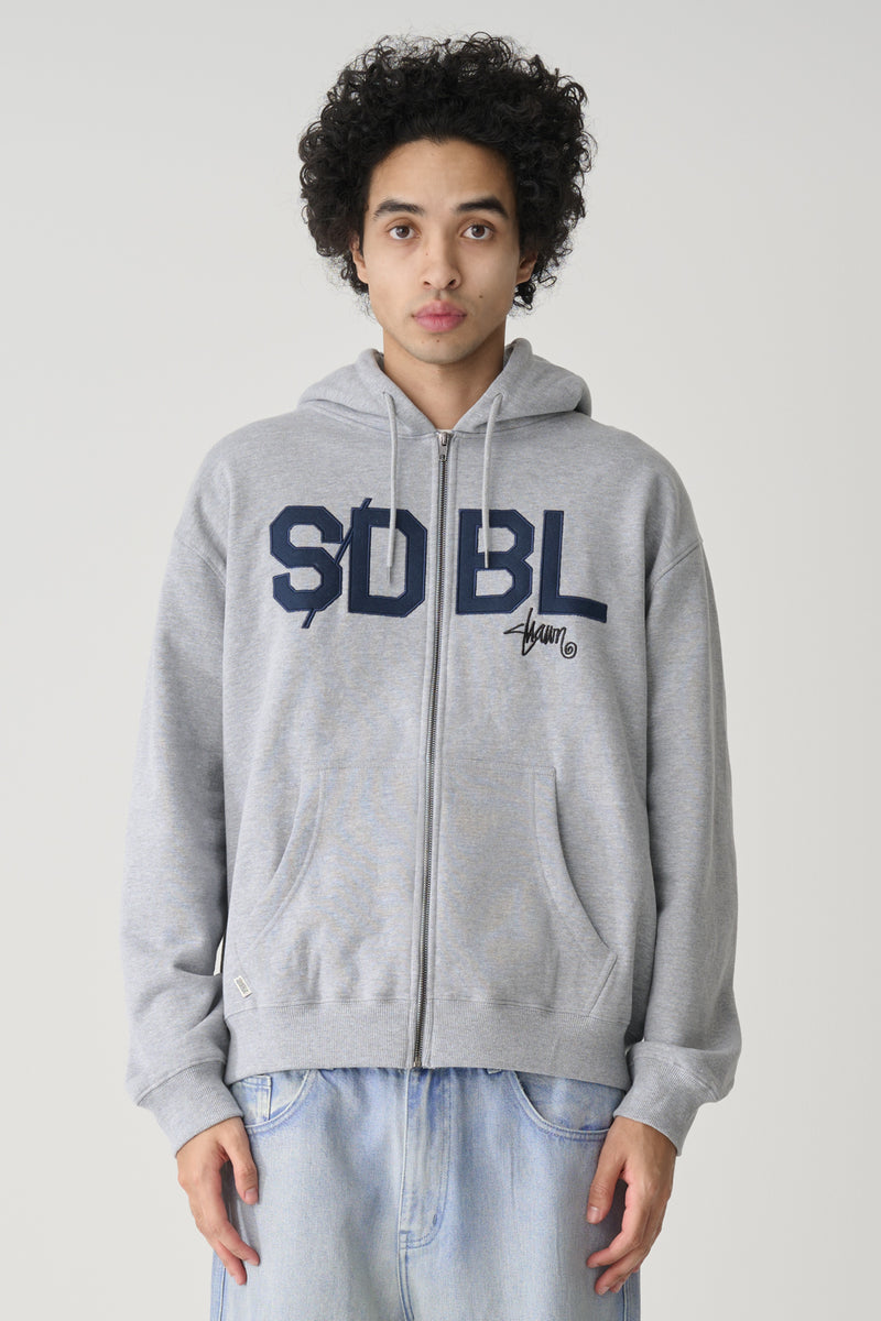 Applique Zip Thru Hooded Fleece - Grey Heather